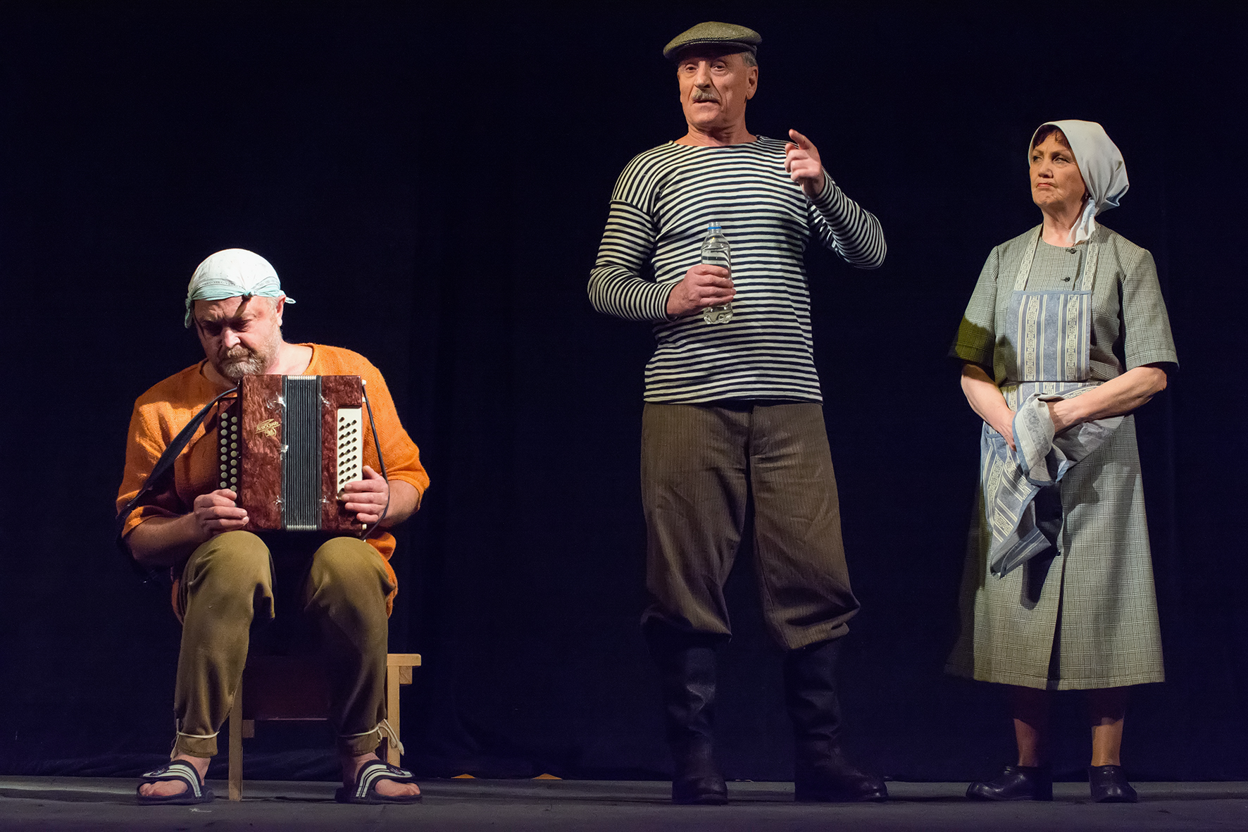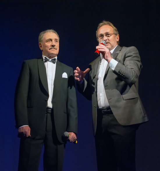 А потім на сцену вийшов директор-художній керівник театру Володимир Петрів не просто, щоб привітати провідного актора і свого друга, але провести творчий вечір. Від Володимира Юліановича, який знає Георгія Морозюка вже понад три десятиліття глядачі дізнались багато нового і не лише з театрального життя. Одна з розказаних історій пов'язана з спільним виїздом на рибалку, яку артист, на відміну від полювання, любить.