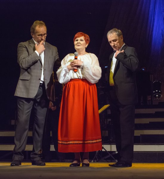 Вона дякувала чоловікові за довгі роки спільного подружнього життя, за підтримку, турботу і любов. І разом з присутньою у залі донькою, зятем та онуком, привітала з ювілеєм.