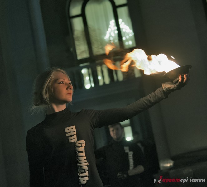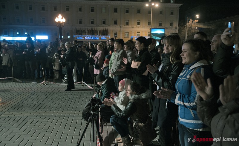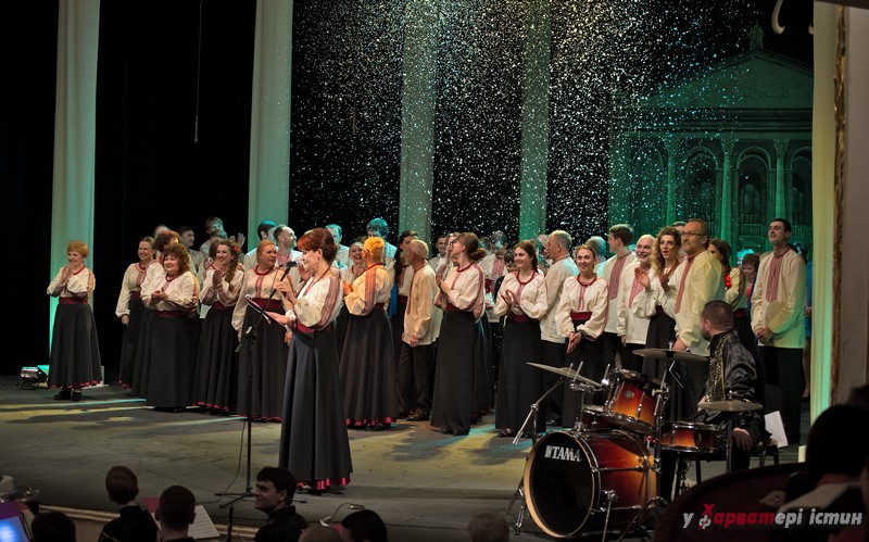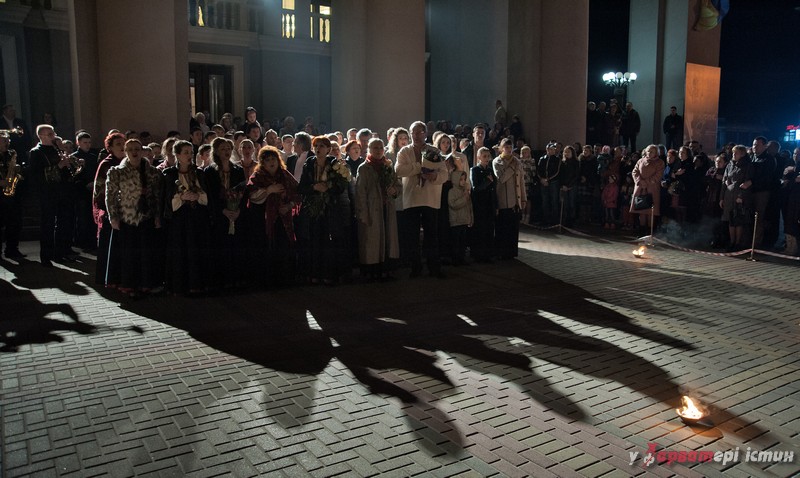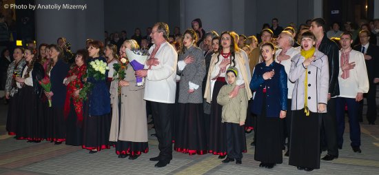 На завершення вечору спільно з глядачами театрали заспівали духовний гімн України «Боже великий єдиний…»,  а потім на площі перед театром прозвучало спільне, світле та єднаюче «Ще не вмерла України ні слава, ні воля…».