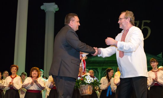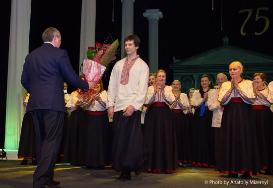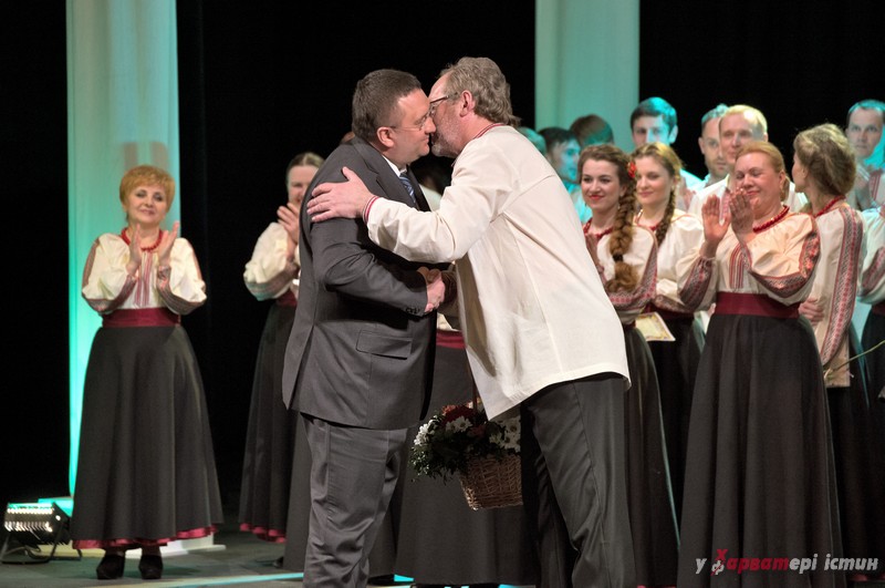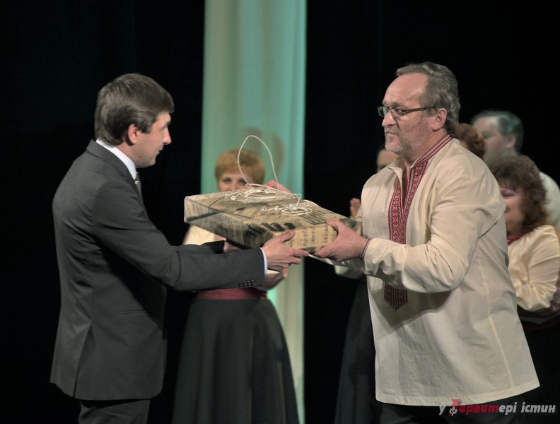 Не обійшлось свято без привітань та подарунків. Найдорожчим презентом до свята для театру стало озвучення наказу президента України Петра Порошенка про присвоєння звання «Заслужений артист України» актору Станіславу Лозовському.
