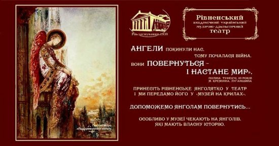 Принести янголятко потрібно на адміністративний вхід театру, він же вхід на малу сцену (зі сторони «Ельдорадо»). Обов’язково вкажіть ім’я та прізвище передавача, а також кілька слів про те, чим особливий янгол, як він до вас потрапив.