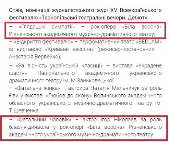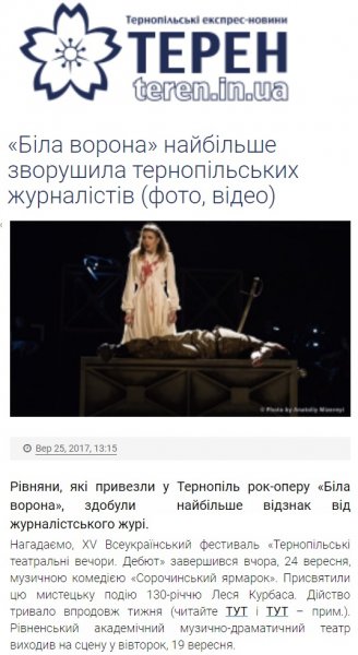Окрім того по закінченню фестивалю саме "Білу ворону" обрали журналісти Тернополя своєю фавориткою!