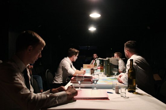 Молоді актори театру «Золоті ворота» натхненно досліджують ментальні звивини членів уряду.