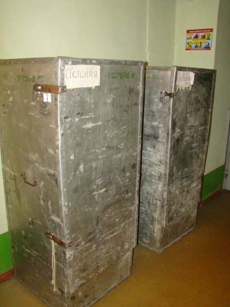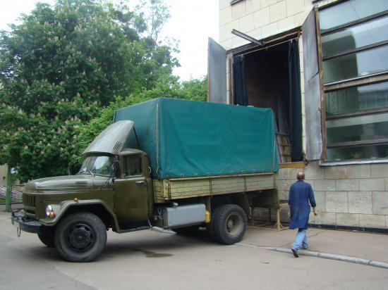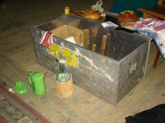 Лаштуємо реквізит. Він приїхав з нами ось у такій металевій скрині! Упс! Зелененький чайничок не з цієї опери...))