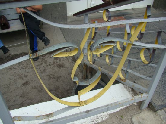 Ось такі серйозні ворота охороняють в'їзд на внутрішній дворик Житомирського театру.