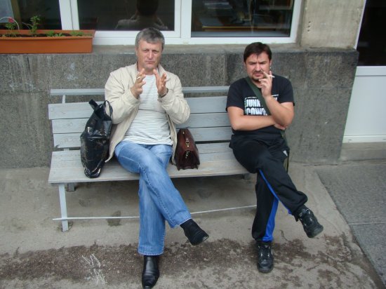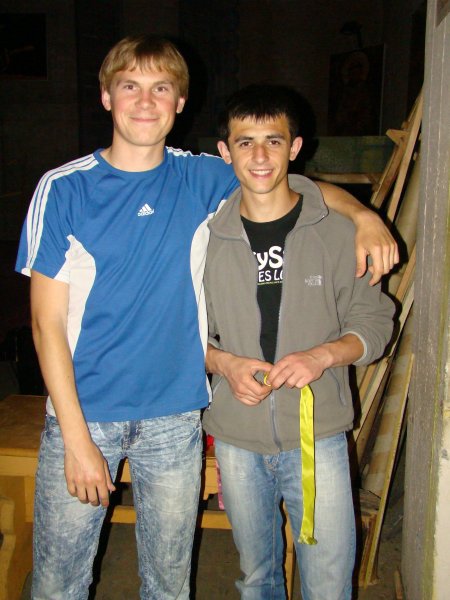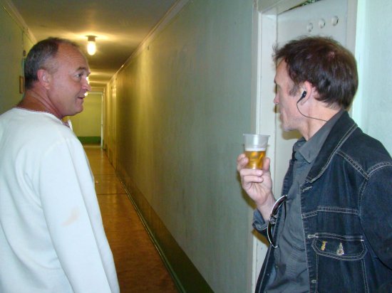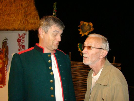 А ось історичне фото. Артист Олег Ягелюк, він же кріпак Олексій (зліва), впереше на гастролях з Рівненським театром.