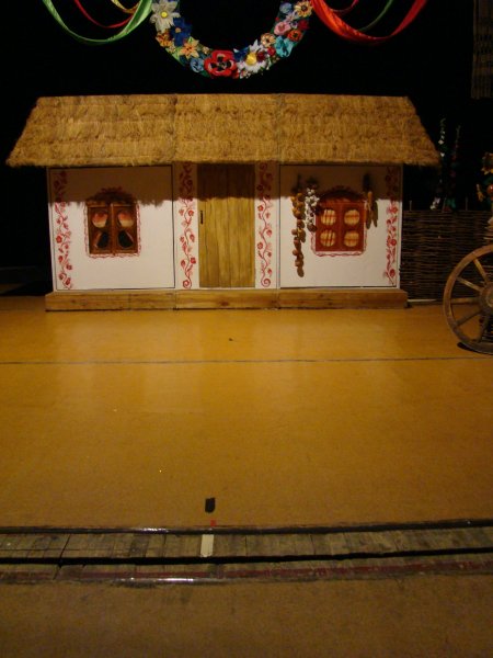 Особливість житомирської сцени - ось такий жолоб на авансцені. Він - необхідність. Ним рухається протипожежна завіса, яка закривається тут горизонтально, а не вертикально, як рівненська.