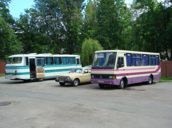 "Друзі по щастю" - рівненський та житомирський театральні автобуси "відпочивають" на стоянці.