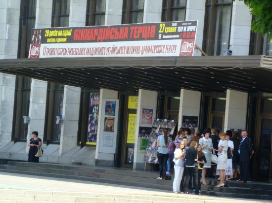 Їхали ми, їхали... і приїхали! Розтяжка на даху театру сповіщала про наш приїзд.