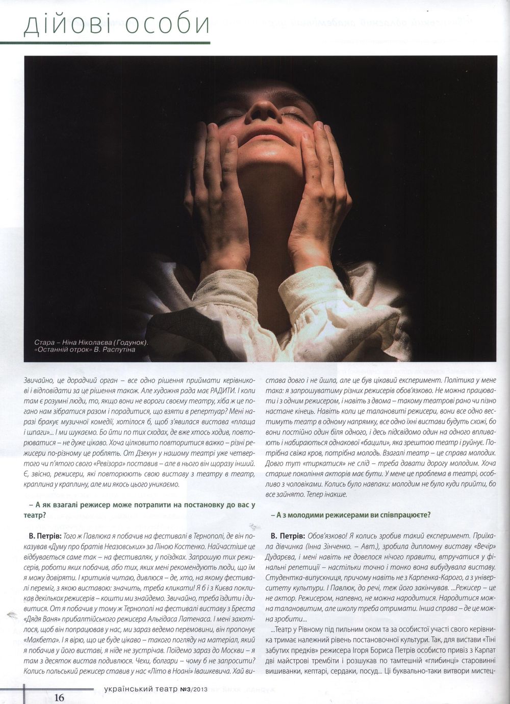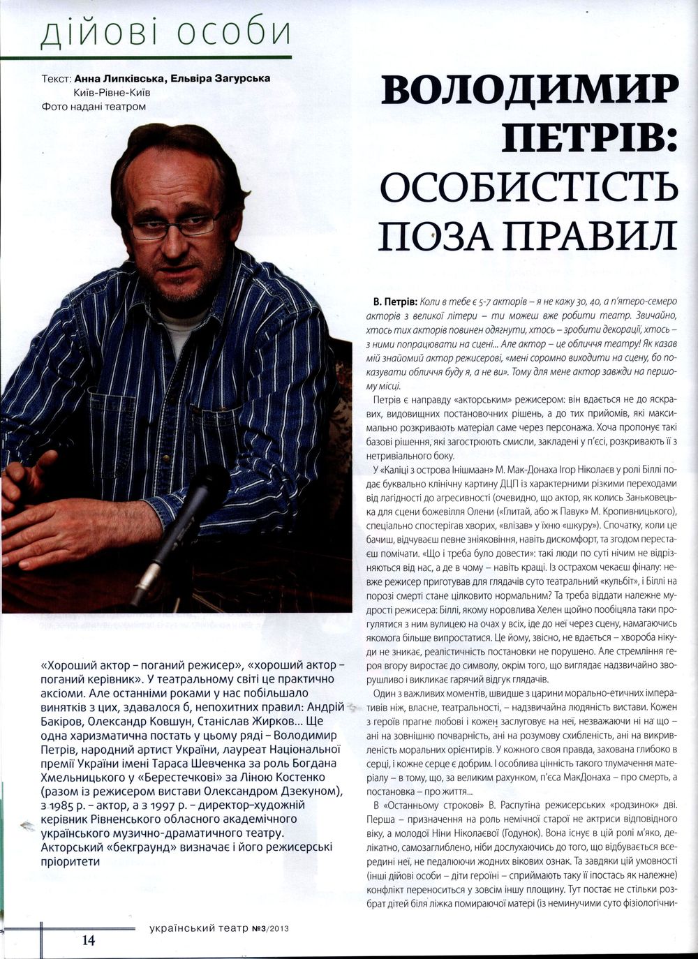 А. Липківська, Е. Загурська // Український театр. - 2013. - № 3. - С. 14-17