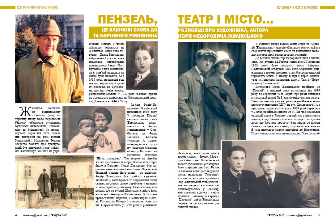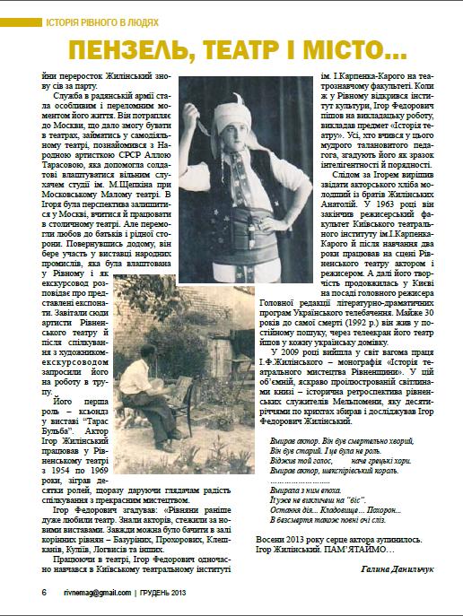 До Вашої уваги розповідь про художника, актора та корінного рівнянина Ігоря Федоровича Жилінського.