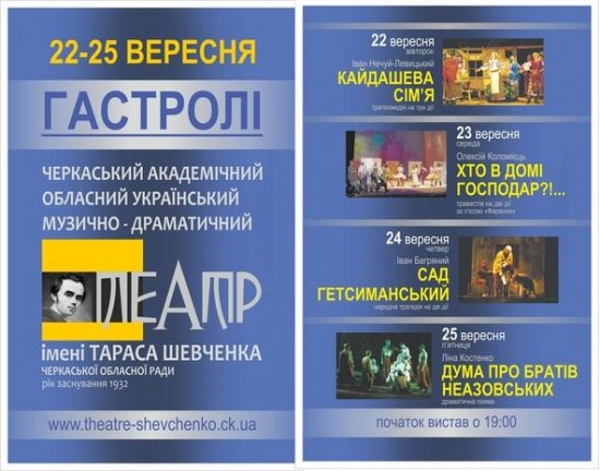 Насолодитись мистецтвом і водночас допомогти черкаським акторам можуть усі рівняни. Гастролі триватимуть з 22 по 25 вересня. Вартіть квитків становить до 70 грн. Більше про вистави читайте на сторінці черкащан.