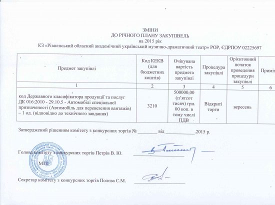 Зміни до Річного плану закупівель на 2015 рік