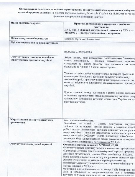 Обґрунтування технічних і якісних характеристик, розміру бюджетного призначення, очікуваної вартості предмета закупівлі